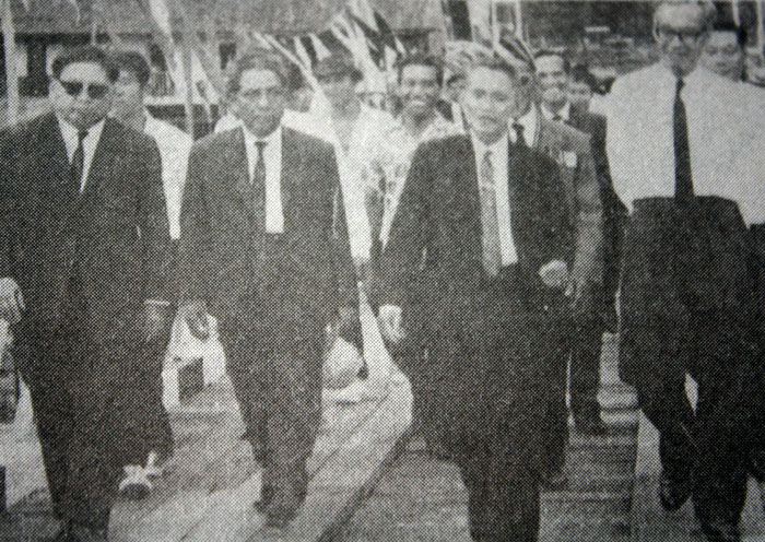 担任工务司的拿督黄锡琦(左),陪着本州第二任首席部长拿督达威斯里主持鲁勃安都大桥的通车礼时一瞥。