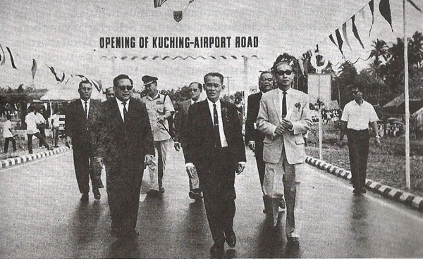 1969年黄锡琦与首席部长拿督达威斯里为古晋机场公路主持通车礼。
