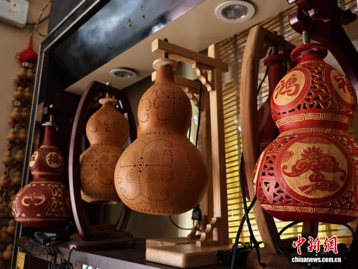 近年来,宋玉良在坚守传统的同时,推动葫芦雕刻走进生活。他推出葫芦酒瓶、葫芦灯具、葫芦门帘等实用产品,让原本多用于观赏的工艺品,变成能融入日常家居的物件。