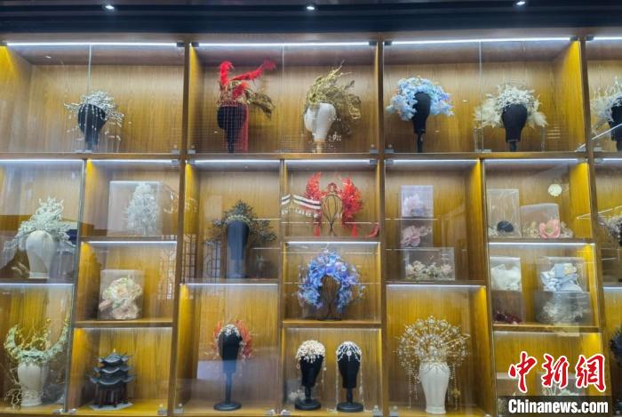 忙着赶工的同时,雁鸿的很多手工头饰作品正在三道堰水乡广场进行展示。“真是没想到这些头饰都是废弃材料做的,太美了,既环保又美观。”参观的市民一边欣赏一边发出感慨。