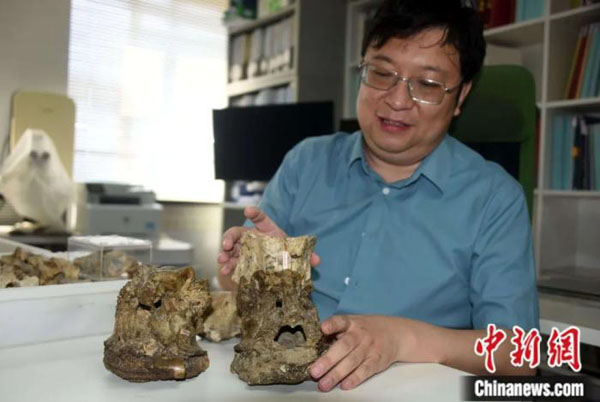 王世骐:系统发育分析显示,现生长颈鹿与獬豸盘角鹿均属于长颈鹿超科,它们头骨和颈部的形态差别很大,但都与雄性的求偶斗争相关,而且都向极端的方向演化。