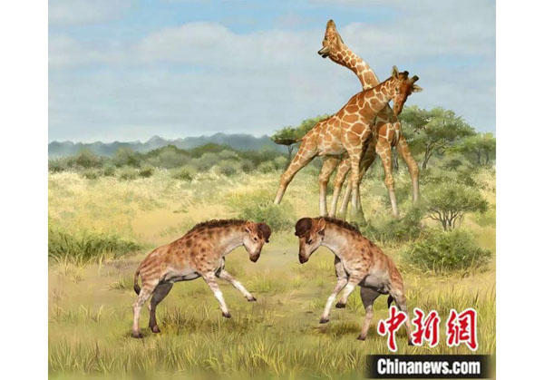 由中国科学院古脊椎动物与古人类研究所王世骐研究员、邓涛研究员和该所客座研究员、美国自然历史博物馆哺乳动物部主任孟津领导的国际合作团队,最新通过对发现于中国新疆、约1700万年前一种奇异的早期长颈鹿“獬豸盘角鹿”化石展开持续深入研究,并对长颈鹿求偶斗争和取食压力两种因素进行深度结合,确认求偶竞争是长颈鹿长脖子演化的直接驱动力。