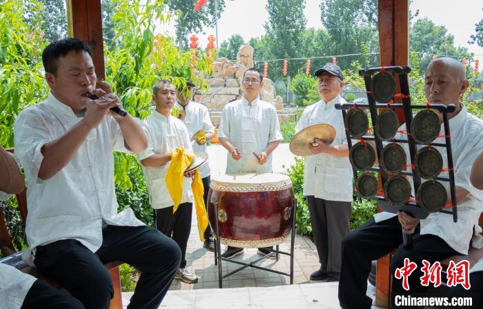 仲夏时节,黄昏来临的农闲时间,河北省任丘市梁召镇辛安庄村的树荫下,十多位村民身着统一服装围在蔡保恒的身边,随着鼓点响起,笙、曲笛、云锣等乐器轮番奏响,悠扬清脆的旋律回响在村庄。
