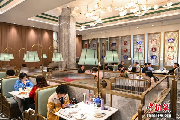 在颇具岭南韵味的大堂里,“老广”(广州人的俗称)罗叔拿起铅笔,在菜单上勾选了虾饺皇、凤爪、艇仔粥、红米肠等菜式。罗叔已经退休,隔三差五便和亲友到此品茗消遣。类似他这样的“老饕”不在少数。