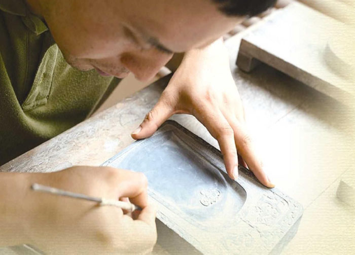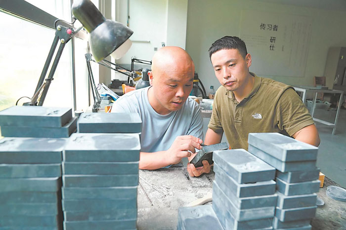 黄瑞介绍,宣砚制作技艺包括采石、选料、设计、制坯、雕刻、打磨、铭文、护养、配盒九大环节、40多道工序,每道工序均有详细的技术指标和制作要求。2017年,宣砚制作技艺被录入安徽省非物质文化遗产名录。作为一名传承人一定守护好这门手艺,让它在自己的手中发扬光大。