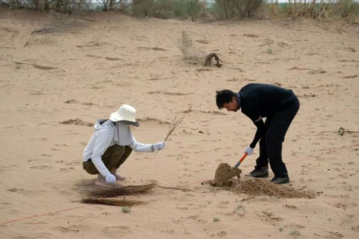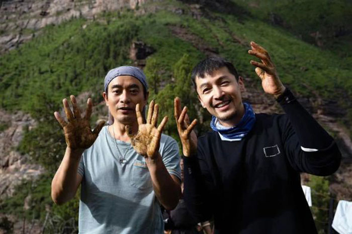 从灯光旖旎的黄河路走来,胡歌脱下剪裁得体的西装,换上冲锋衣,素面朝天地出现在内蒙古乌兰布和沙漠的一块农地里。他和好友陈龙正开着拖拉机除草,隔空向导演王家卫展示:“这就是阿宝和陶陶的归宿。”