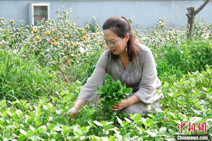 55岁的她是保定市级非物质文化遗产项目高阳土布草木染技艺传承人,在她的草木染文化园里,如今种着蓼蓝、荷花、红花、板蓝根、海州常山等百余种植物。