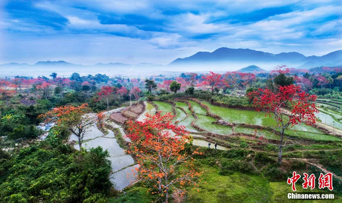 每年1月至3月,在昌江邂逅开往春天的木棉火车。走在田埂上,低头是新绿,抬头是火红,若有雾气缭绕远山间,这一刻关于春天的美好都浓缩在这里。