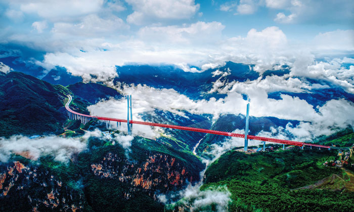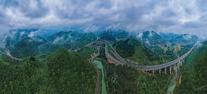 讲述包括高速公路在内的贵州陆路交通体系的建设成就,就不得不提一个标志性载体──桥梁。数据显示:贵州高速公路平均桥隧比达到41.2%以上,部分高速公路,桥隧比甚至高达80%,近一半的高速路程需穿越大山、跨越河流。这样的客观环境,也让贵州收获了另一个新称号──“桥梁博物馆”。