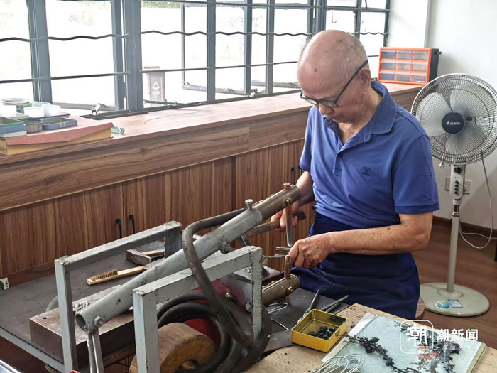 我们还见到了正在工作室打磨新作品的芜湖铁画锻制技艺传承人张家康。在他看来,芜湖铁画的魅力,不止体现在最终的作品之中,还体现在制作过程的每一个细节里。剪、叠、錾、锻、铆、焊、锉……这些工艺各有各的妙不可言。
