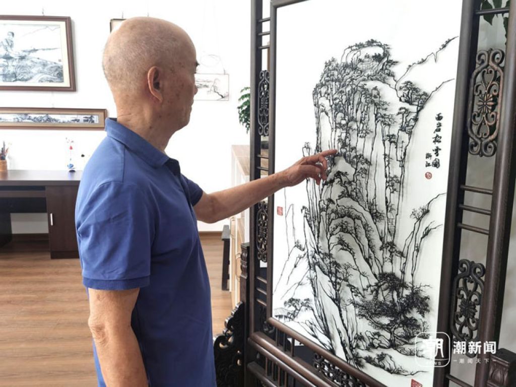 在人民大会堂接待外国政要和贵宾的大厅,陈设着一幅巨型画作。画上一棵迎客松,挺拔伟岸,苍劲古朴。这幅画作重达200公斤。松树上成千上万个松针,都是匠人一根根敲打出来,又挨个锻接拼成。