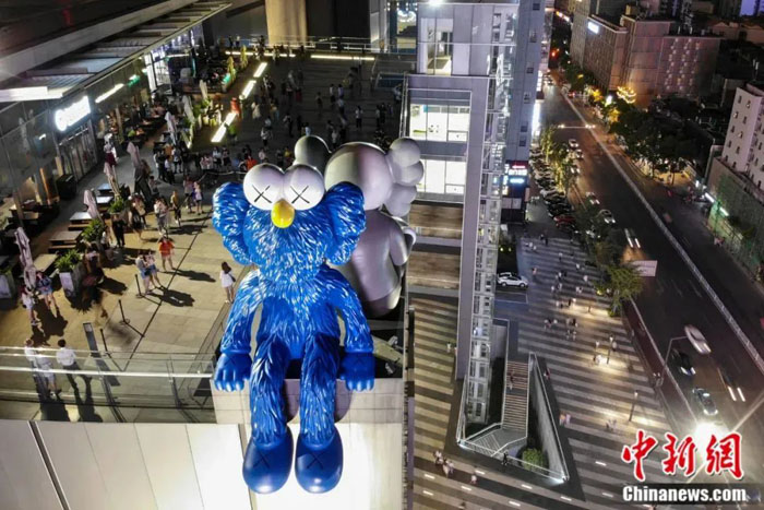 在长沙国金中心的空中花园上,有两只巨大公仔娃娃,即便暮色降临,专程到此打卡拍照的游人仍络绎不绝。