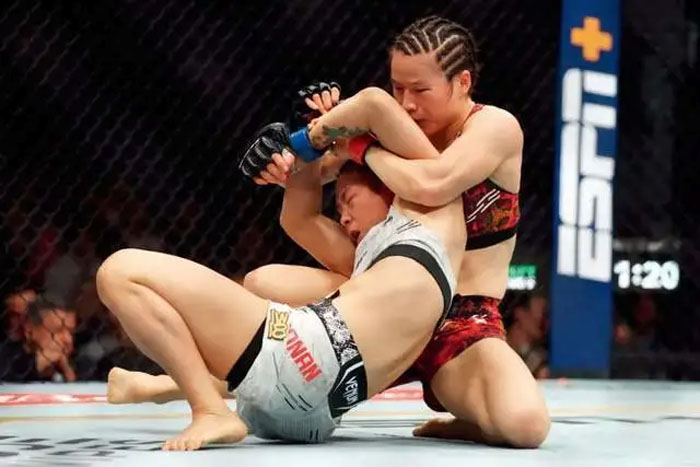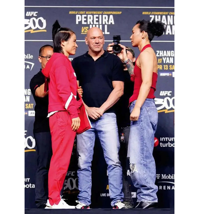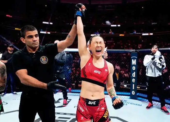这是2024年4月14日,UFC(世界终极格斗冠军赛)在美国拉斯维加斯举办的第300届数字赛──“UFC300”中的一场冠军争夺战。比赛中那位表现出色的红衣选手,正是第一位拿到UFC世界冠军的中国格斗选手张伟丽,而给人留下深刻印象的白衣选手,则是最早在UFC签约的中国女选手闫晓楠。