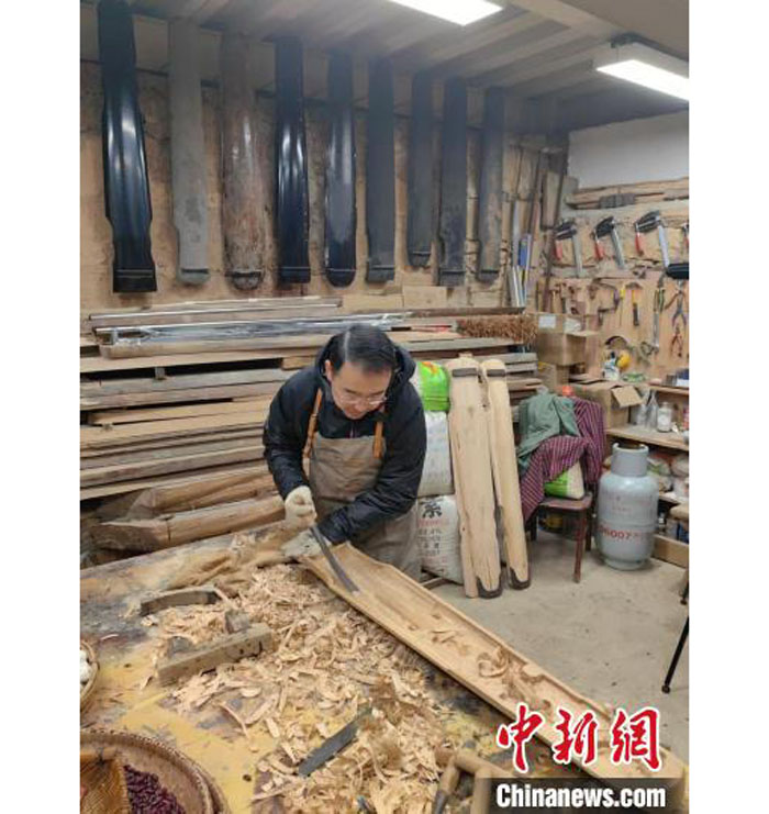 距离云南省会昆明约12公里的大墨雨村里,来自四川达州的艺术家郭鹏在其斫琴工作室“馥慈山房”中忙碌。这里曾是一栋几乎荒废的老宅,经郭鹏改造后变得古朴雅致,兼具现代生活功能,成为他艺术创作的基地以及和父母的新家。